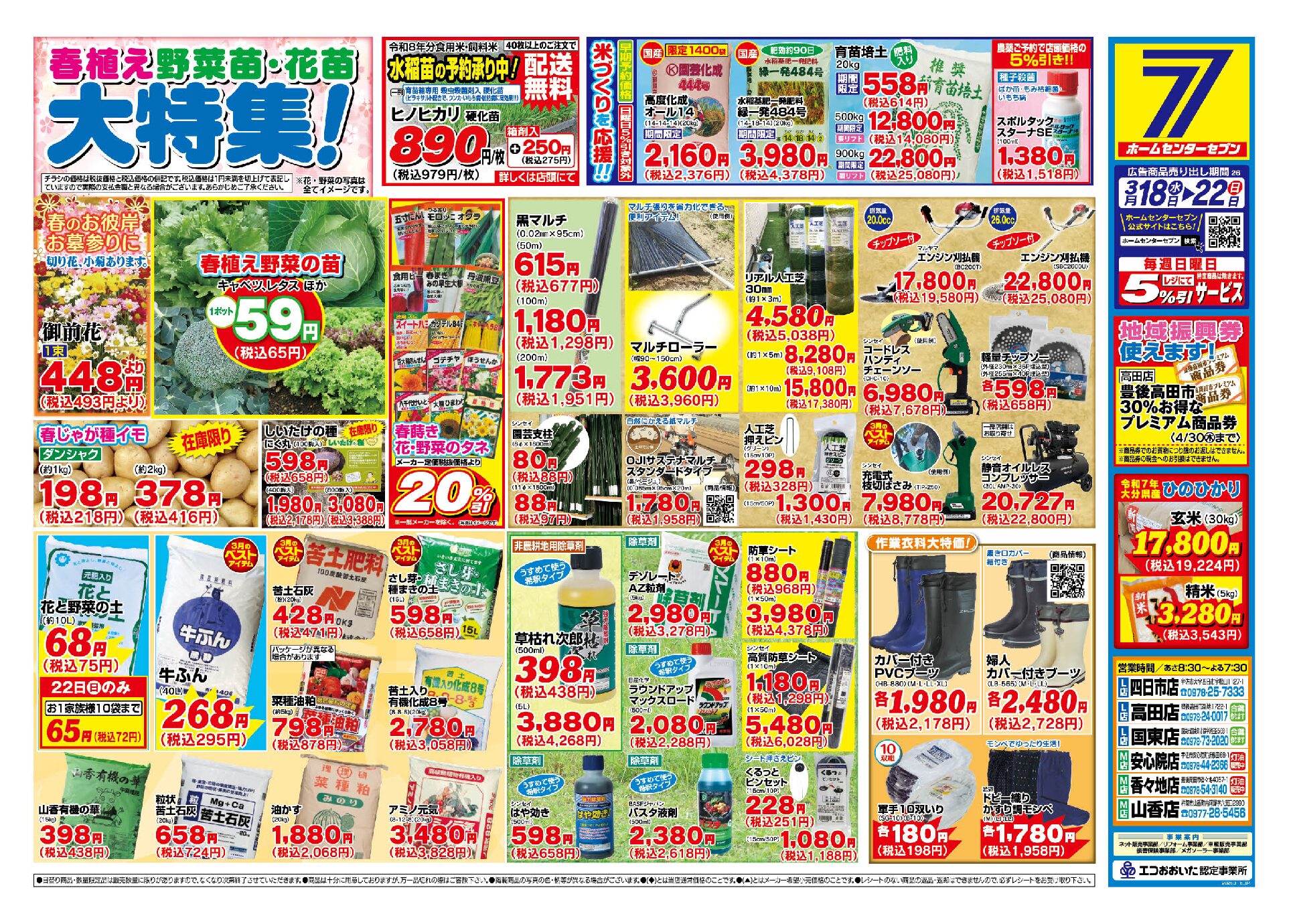 春植え野菜苗・花苗大特集! 3/18(水)~22(日)