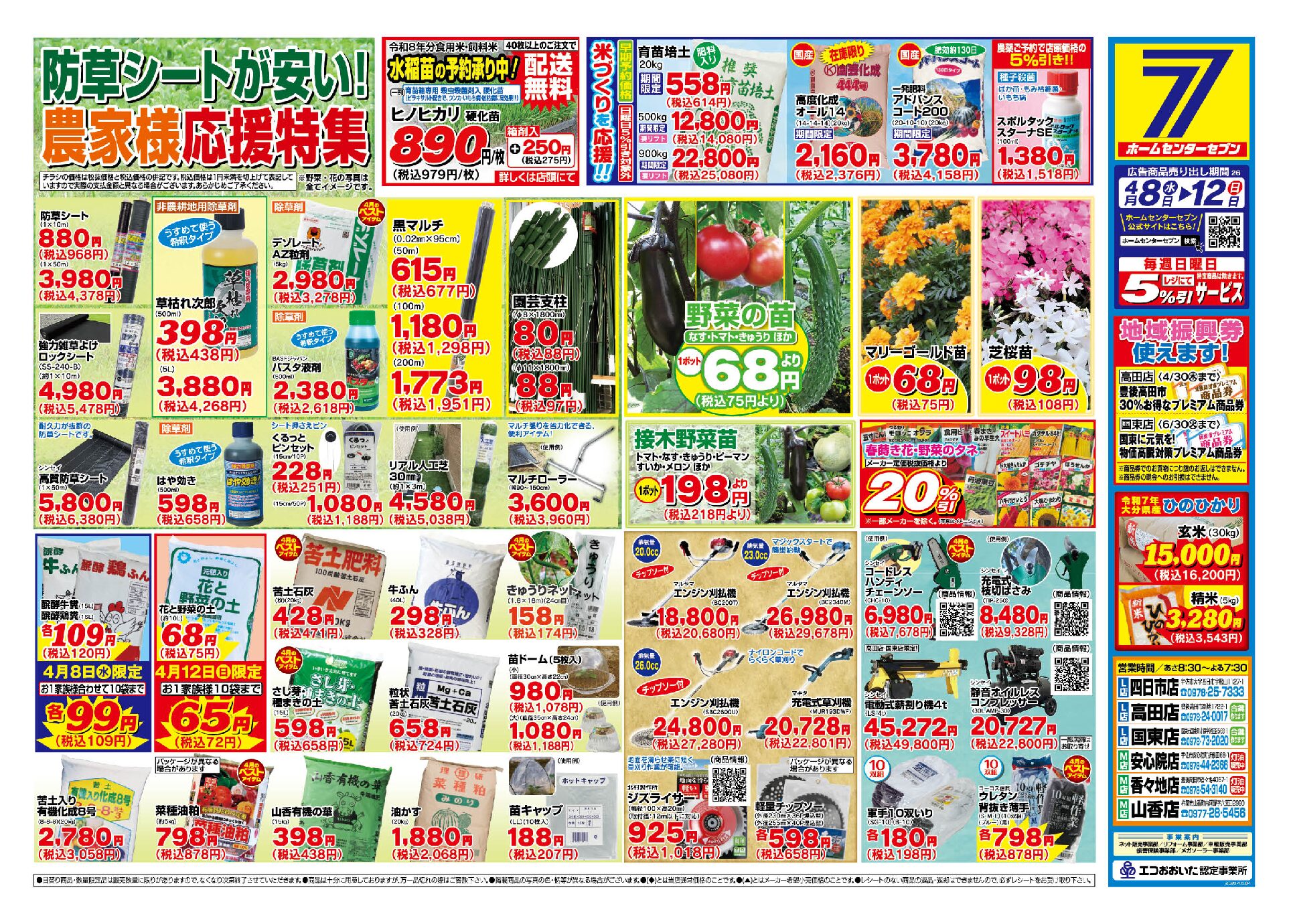 防草シートが安い!農家様応援特集 4/8(水)~12(日)